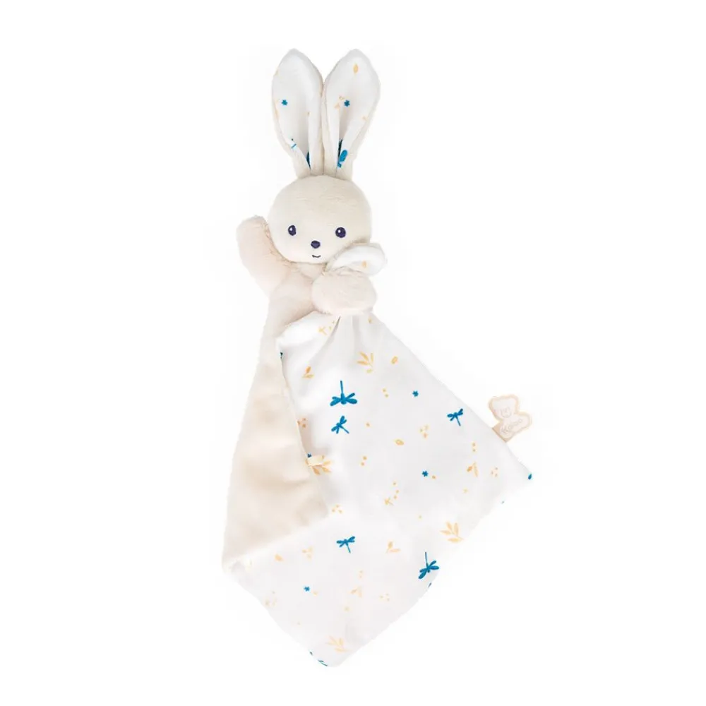 Ce Doudou Lapin Enveloppe Dans Son Carre De Douceur Sera Le Compagnon Prefere De Bebe. Avec Son Petit Corps Moelleux En Micro-Velours, Le Lapin Kaloo Est Facile A Agripper Et A Tenir Par Le Corps Ou Ses Longues Oreilles. Le Doudou Plat Blanc Carre Entre Ses Mains Est Habille De Petites Libellules Qui Virevoltent Entre Les Brindilles Dorees. Cet Imprime Delicat Et Poetique Se Retrouve Egalement Dans Les Oreilles Du Lapin. Presente Dans Un Bel Ecrin, Ce Dernier Peut Etre Reutilise Comme Etui De Rangement. Son Tissu Et Son Rembourrage Sont Fabriques A Base De Polyester Recycle Issu De Bouteilles En Plastique, Ce Doudou Est 100% Ecoresponsable.