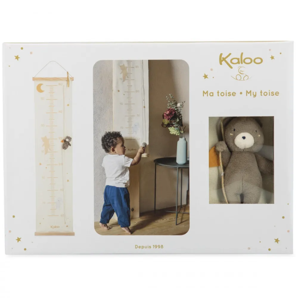 La Premiere Toise De Bebe, Pour Suivre Sa Croissance Et Le Regarder Grandir. Evolutive, Cette Toise En Coton Mesure 127 Cm. Elle Se Fixe Au Mur Et Permet De Mesurer L’Enfant De 60 Cm A 160 Cm, Ce Qui En Fait Un Cadeau De Naissance Qui Suivra Le Tout-Petit Pendant Toute Son Enfance. Un Adorable Ours En Peluche Sert D’Indicateur Pour Marquer La Taille De L’Enfant Sur Le Support : Ce Qui Promet De Beaux Moments De Partage Et Des Rituels En Famille Au Moment De Mesurer Bebe. Pour Deplacer L’Ourson Kaloo A La Taille Souhaitee, Il Suffit De Tirer La Corde Et De Presser Sur Le Bouton Au Dos De La Toise, Afin D’Ajuster Au Mieux Sa Position. Pour Inscrire A Jamais Le Souvenir Des Mesures Du Bambin, La Toise En Tissu Permet L’Inscription Des Dates Ou Du Prenom Au Feutre Ou Au Stylo Directement Sur Le Support. Decoree D’Illustrations Douces Et Poetiques, Cette Toise Kaloo Se Fond Parfaitement Dans La Decoration De La Chambre De Bebe. C’Est Un Element Incontournable Dans La Nursery ! Cette Toise Pour Bebe Est En Coton Et En Bois De Pin Radiata Certifie Fsc®. La Peluche Ourson Est Composee De Micro-Velours Tout Doux Et De Rembourrage A Base De Polyester Recycle.