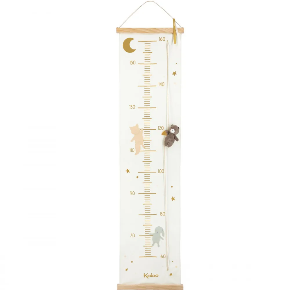 La Premiere Toise De Bebe, Pour Suivre Sa Croissance Et Le Regarder Grandir. Evolutive, Cette Toise En Coton Mesure 127 Cm. Elle Se Fixe Au Mur Et Permet De Mesurer L’Enfant De 60 Cm A 160 Cm, Ce Qui En Fait Un Cadeau De Naissance Qui Suivra Le Tout-Petit Pendant Toute Son Enfance. Un Adorable Ours En Peluche Sert D’Indicateur Pour Marquer La Taille De L’Enfant Sur Le Support : Ce Qui Promet De Beaux Moments De Partage Et Des Rituels En Famille Au Moment De Mesurer Bebe. Pour Deplacer L’Ourson Kaloo A La Taille Souhaitee, Il Suffit De Tirer La Corde Et De Presser Sur Le Bouton Au Dos De La Toise, Afin D’Ajuster Au Mieux Sa Position. Pour Inscrire A Jamais Le Souvenir Des Mesures Du Bambin, La Toise En Tissu Permet L’Inscription Des Dates Ou Du Prenom Au Feutre Ou Au Stylo Directement Sur Le Support. Decoree D’Illustrations Douces Et Poetiques, Cette Toise Kaloo Se Fond Parfaitement Dans La Decoration De La Chambre De Bebe. C’Est Un Element Incontournable Dans La Nursery ! Cette Toise Pour Bebe Est En Coton Et En Bois De Pin Radiata Certifie Fsc®. La Peluche Ourson Est Composee De Micro-Velours Tout Doux Et De Rembourrage A Base De Polyester Recycle.